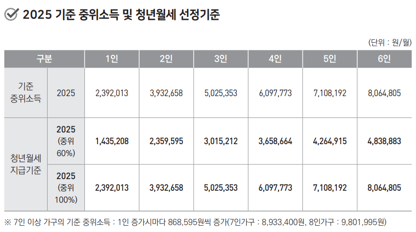 청년 1인가구의 경우 근로소득이 143만 원(2025년 기준) 이하여야 하는 것이 아니라 소득"평가"액이 143만 원 이하여야 합니다.